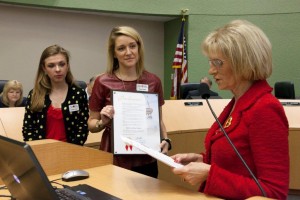 Commissioner Sandy Murman proclaimed February as American Heart Month in Hillsborough County. On hand to accept the proclamation was Kate Sawa, Executive Director of AHA Tampa Bay and Aubrey Oyler, Event Specialist for AHA’s Go Red for Women.