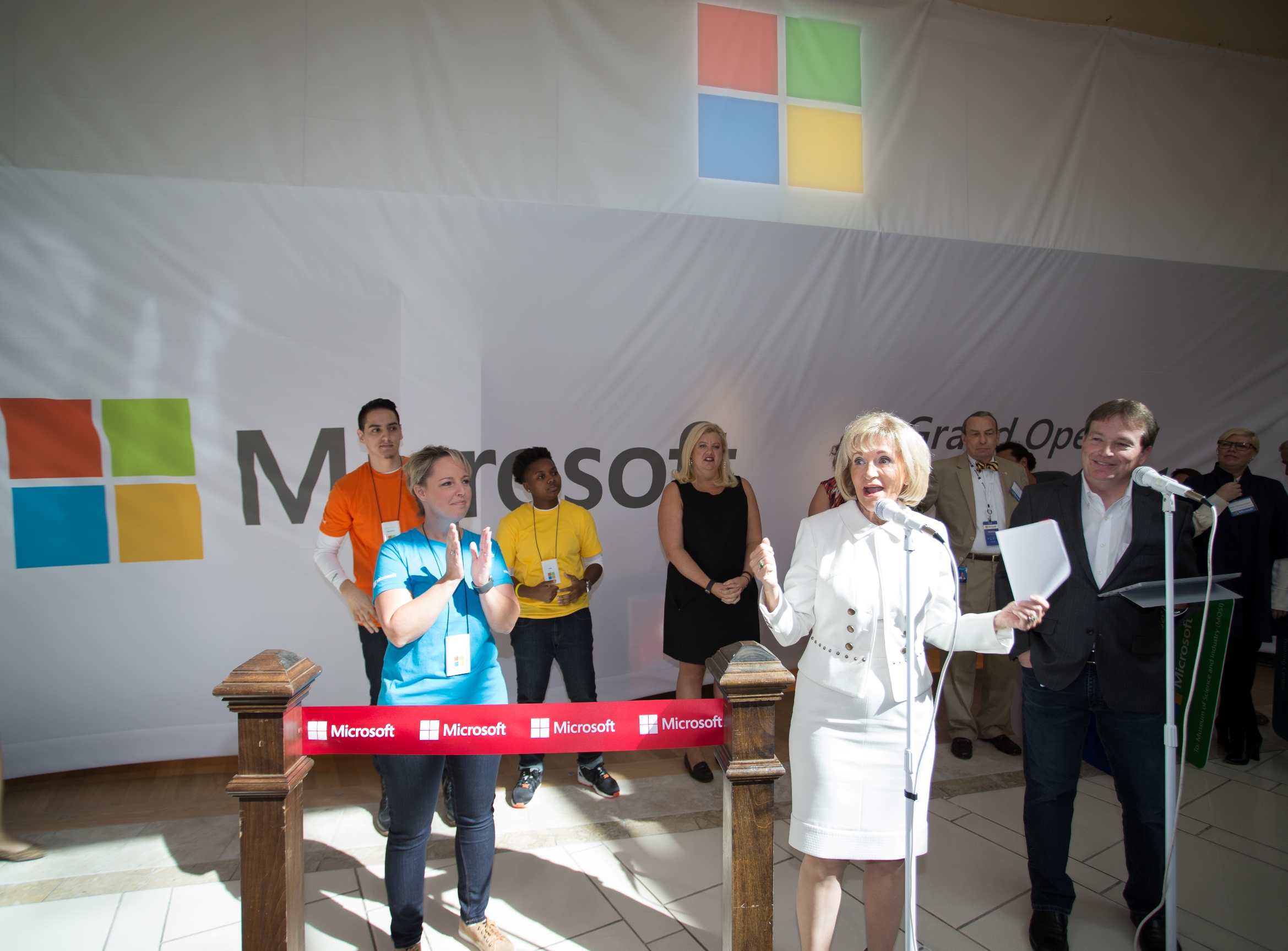 Commissioner Sandy Murman welcomes Microsoft to International Mall during a special ribbon cutting ceremony.