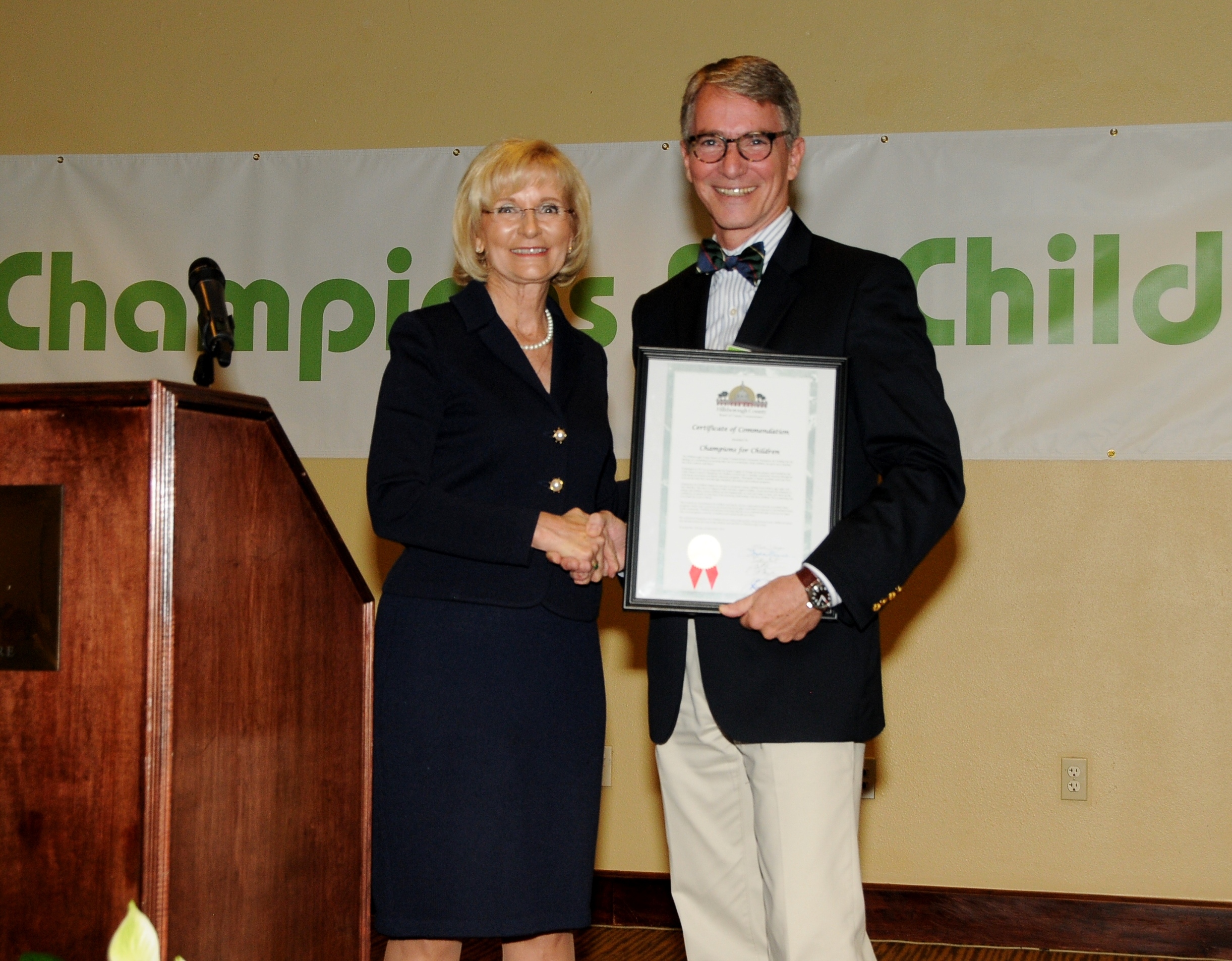 Commissioner Sandy Murman honors Champions for Children, which has provided early childhood education and prevention services to the children of Hillsborough County. Executive Director Brian McEwen accepted the commendation.