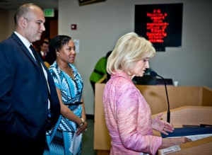 Sandy proclaimed “Walk a Mile for a Child in Foster Care Day” at a County Commission Meeting. Eckerd Community Alternatives Advisory Council member Dan Jurman and Director of Programming, Lesa Sims accepted the proclamation.