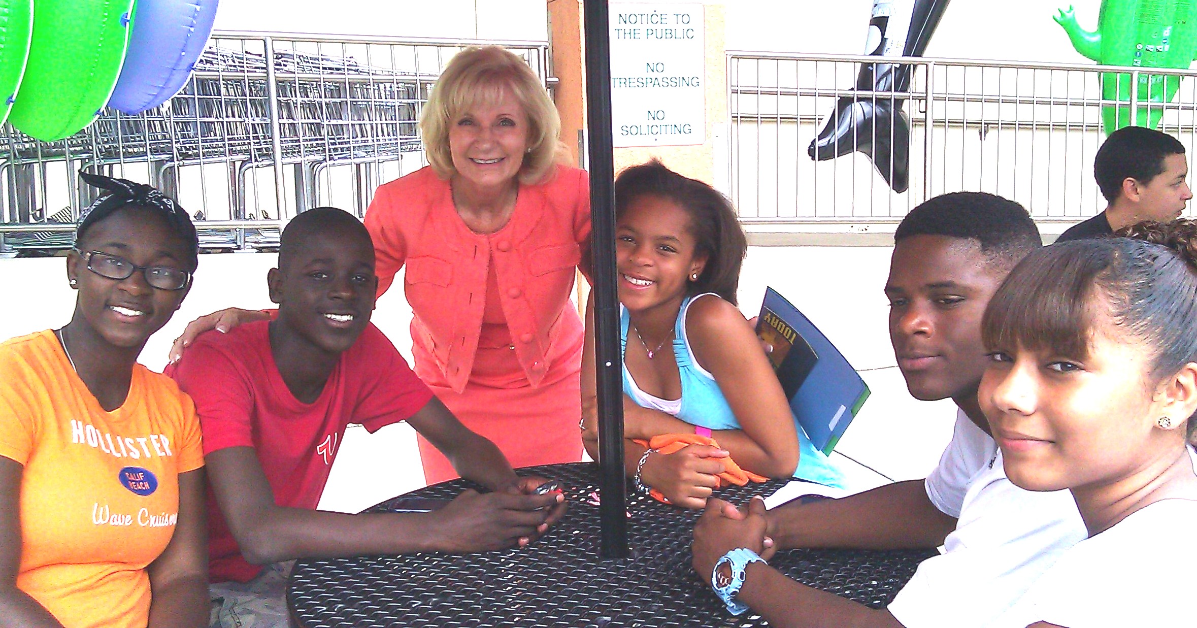 Sandy visits with Financially Intelligent Teens (FIT) during their grocery shopping exercise at the Hyde Park Publix