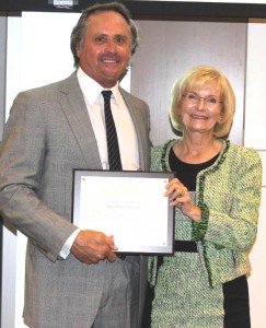 Commissioner Murman presents Port Board Member Steve Swindal of Marine Towing Swindal with a "You Make a Difference" plaque for service to Port Tampa Bay.