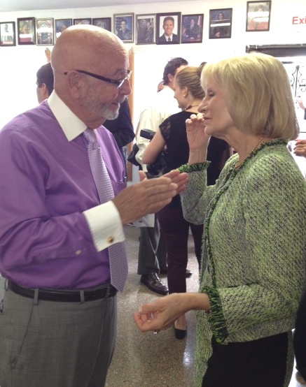 Sandy talks with Tampa City Council Chairman Charlie Miranda during a lunch with Governor Scott at the West Tampa Sandwich Shop.