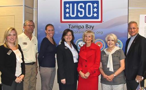 Sandy meets with volunteers and staff of the new USO at Tampa International Airport