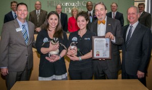 Commissioner Sandy Murman helped recognize the Florida Aquarium on its 20th Anniversary at a BOCC meeting. On hand to accept the commendation for the Aquarium were Thom Stork, Mark Watson, Mark Haney, Meagan, Catherine and two penguins Rocky and Reef.