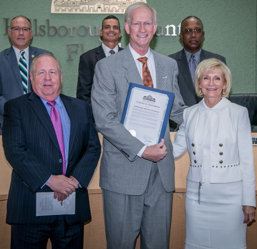 Sandy recognizes the Hillsborough Education Foundation for 25 years of supporting students from all walks of life. On hand to receive the special award are Phil Jones, President, and Duane Johnson, Chairman of the HEF.