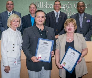 Commissioner Sandy Murman commends Colonel Evelio Otero and Maria Del Pilar Ortiz for being named as Tampa Hispanic Heritage’s Hispanic Man and Hispanic Woman of the Year.