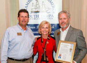 Sandy recognizes the South Tampa Chamber of Commerce on the occasion of its 90th Anniversary. Accepting the commendation were Mike Jenkins and Bill Yanger.