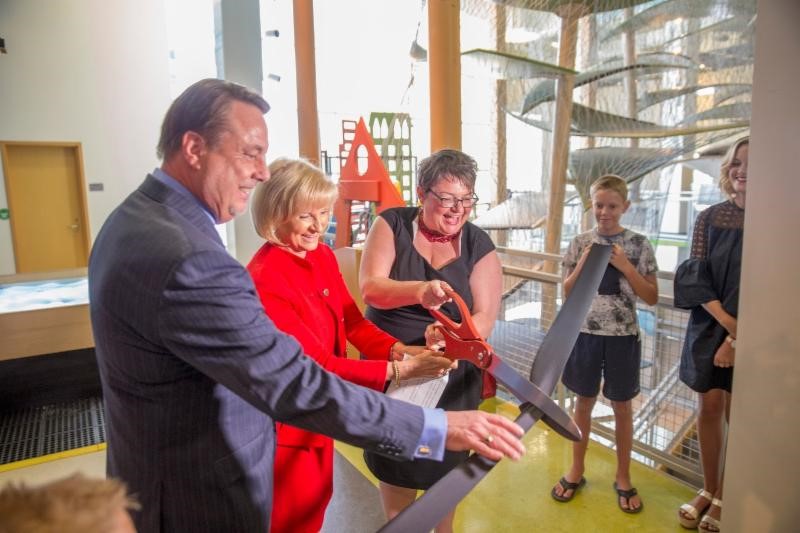 Sandy and Jennifer Stancil joined Matt Jordan of Tampa Bay Water, for the Ocean Sandbox ribbon cutting at the Glazer Children’s Museum.