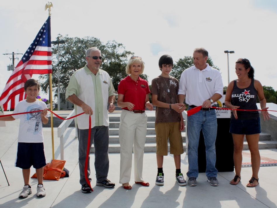 Commissioner Murman is on hand to dedicate the Diego Duran Skateboard Plaza in Apollo Beach with Diego’s family, the SouthShore Chamber and County Recreation officials