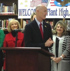 Commissioner Murman helps welcome Governor Rick Scott to Plant High School in South Tampa. The Governor was presenting a check for $8 million to Hillsborough County Schools.