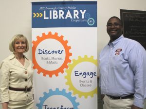 Sandy and Preston Cook, Emergency Management Director, at her Get Ready! Hurricane Prep Talk.