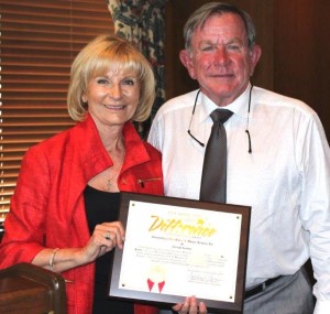 Commissioner Sandy Murman congratulates George Lorton of International Ship Repair on its new 275-ton crawler crane, the Ms. Kaitlyn.