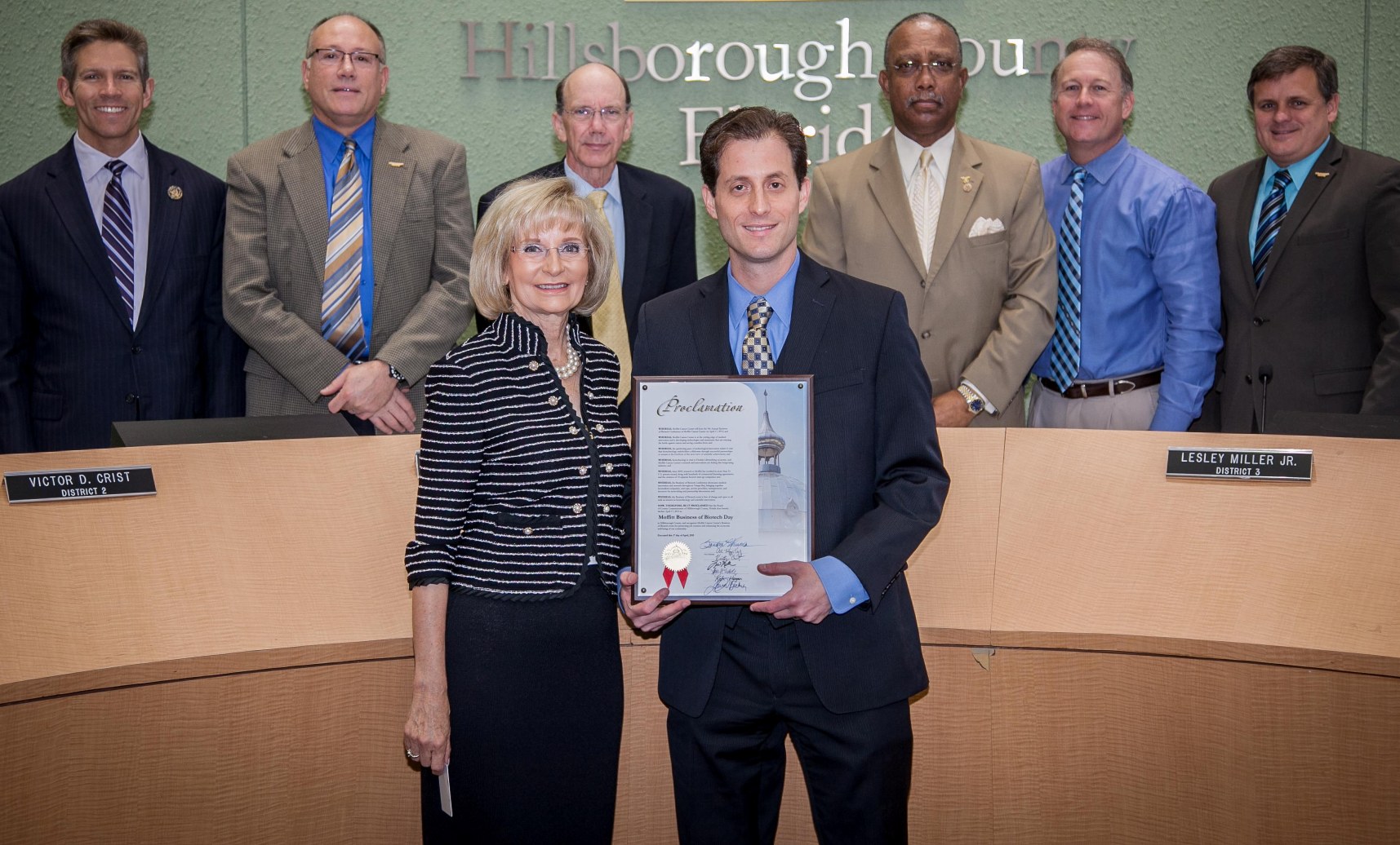 Commissioner Sandy Murman proclaims Moffitt Business of Biotech Day in Hillsborough County at a meeting of the BOCC.