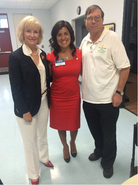 Sandy speaks to Jerry Scaglione, Jackie Toledo and the membership of MacFarlane Park Neighborhood Association and Neighborhood Watch at the Barksdale Senior Center.
