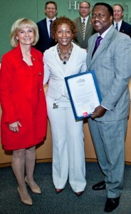 Commissioner Sandy Murman proclaims May as Older Americans Month in Hillsborough County. On hand to accept the proclamation were Ven Thomas, Director of Family & Aging Services and Bart Banks, Division Director of Aging Services.