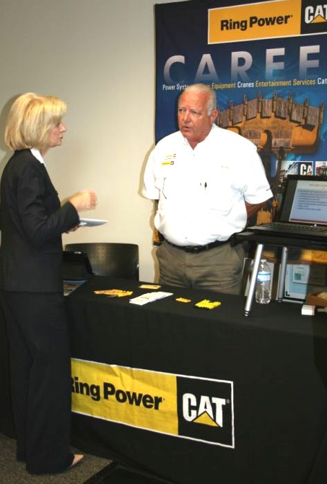Sandy talks with Noel Schoonmaker of RingPower during her South County Job Fair at the SouthShore Regional Service Center in Ruskin