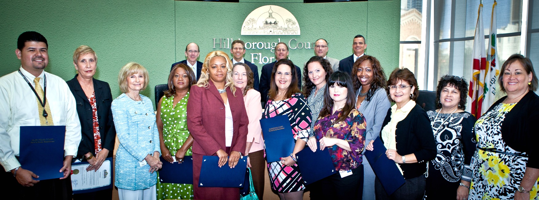 Commissioner Murman proclaims Back to School Readiness Month. School Board Member Susan Valdez, Martine Dorvil of the UACDC and Cindy Morris of the Department of Health and many partners were on hand to accept the proclamation.