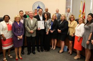 Sandy presents the Small Business Week proclamation before the BOCC.