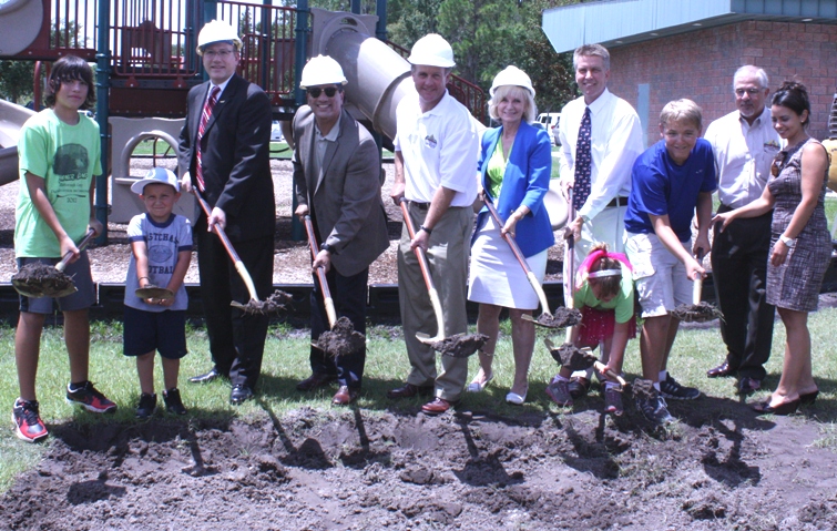 Sandy helps break ground for Westchase Park gymnasium with Westchase children, parents, volunteers and park staff