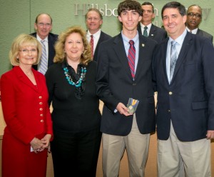 Sandy presented Derek Frantz of Jesuit High School with the Volunteer or Community Service YEA! Youth Excellence and Achievement Award along with his mother and father.