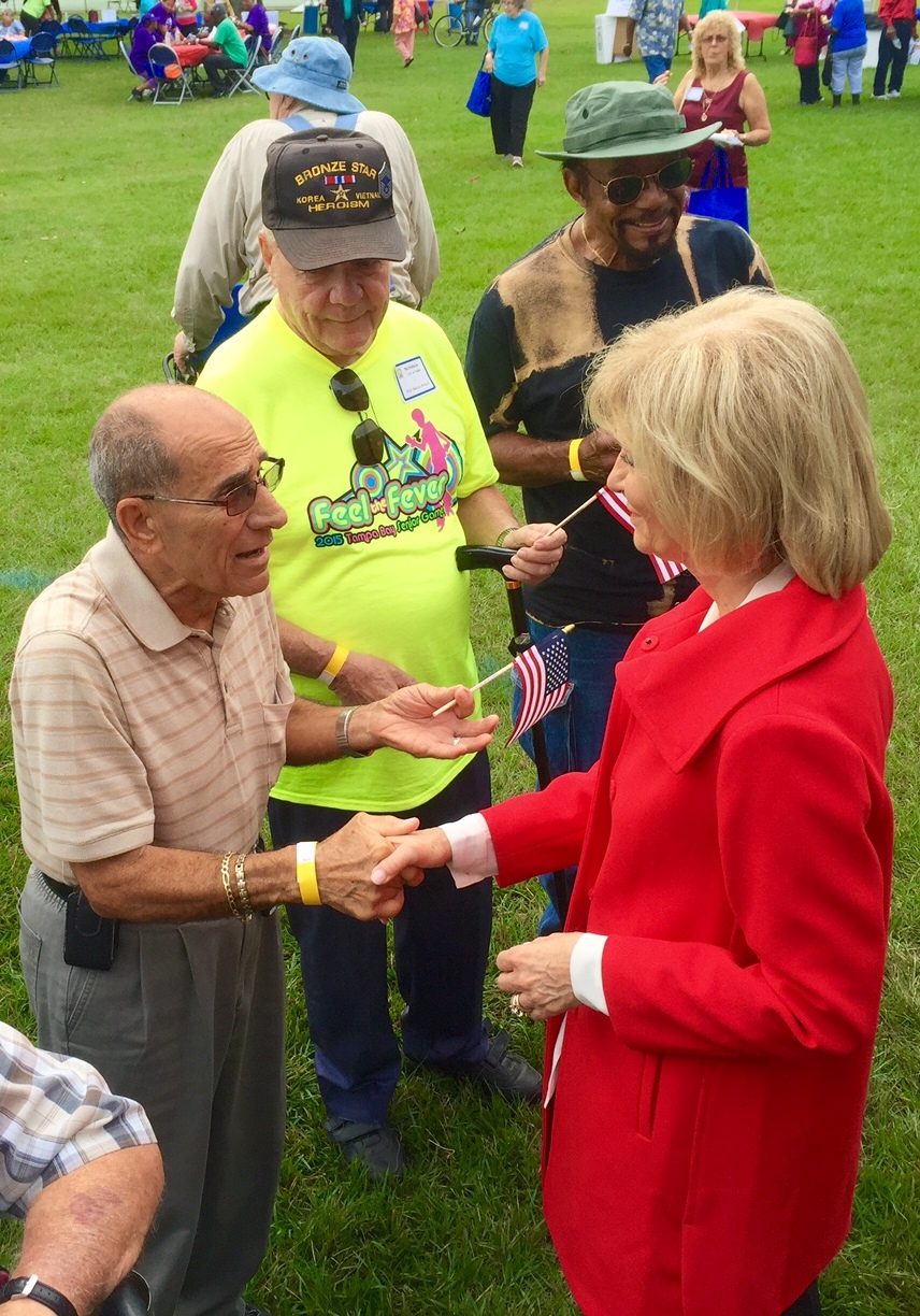 Sandy visited with residents during Seniors Day at Hillsborough County's MacFarland Park.